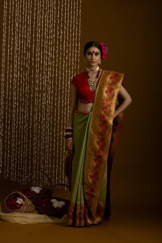 Green Rose Booti Banarasi