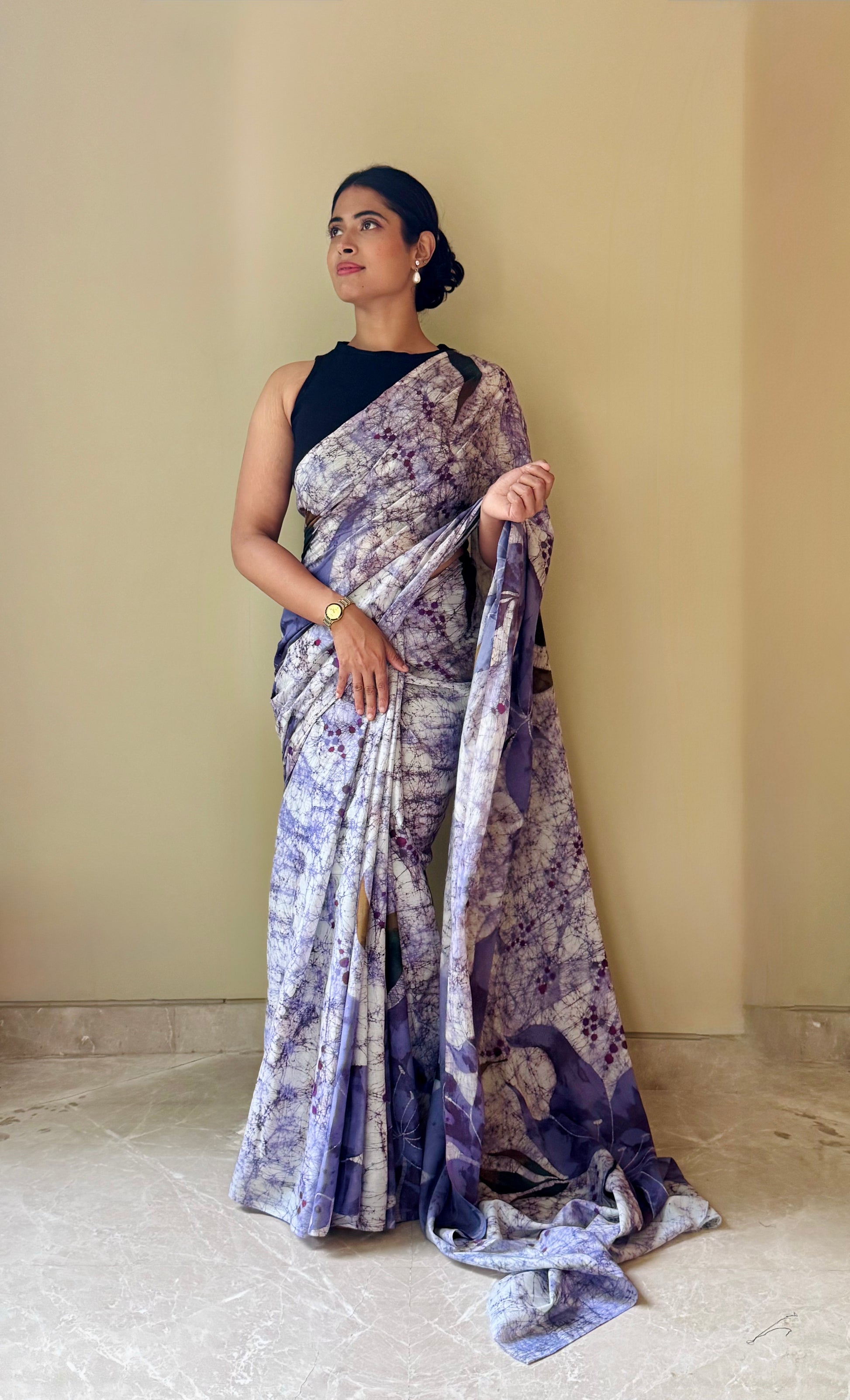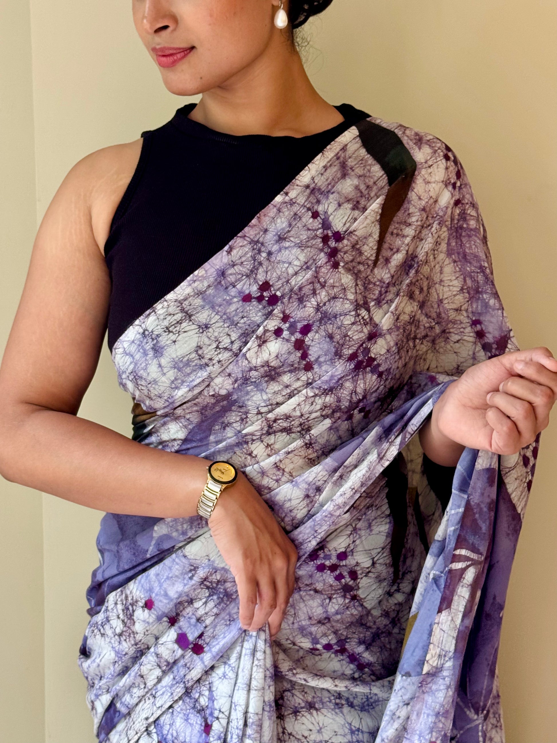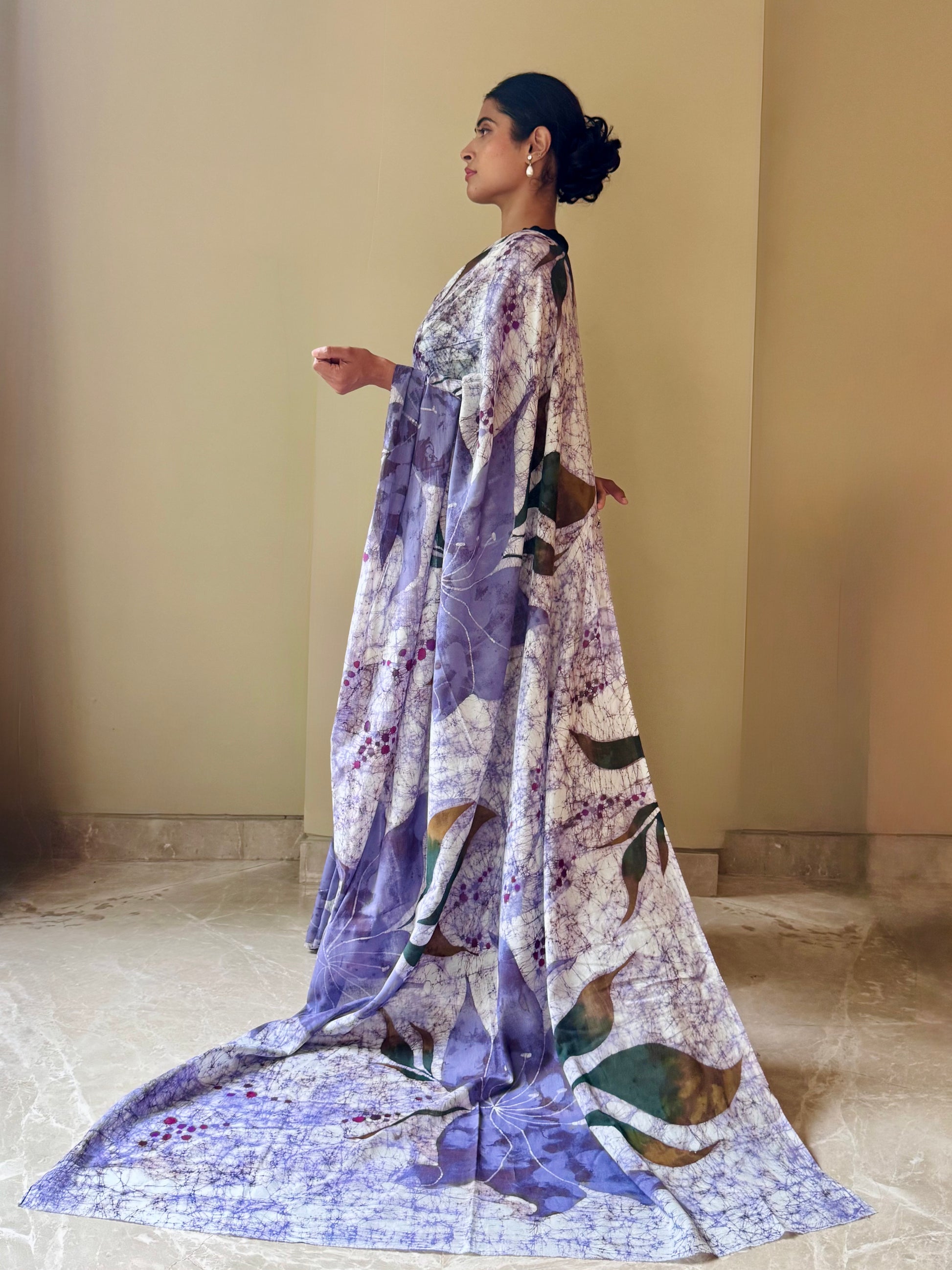 Description: A soft printed cotton saree in shades of lavender and lilac — delicate, airy, and effortlessly elegant. Part of our Rangtaari - Cotton Collection, this saree brings together comfort, elegance, and a subtle artistic touch. Made from breathable, lightweight cotton, it is ideal for all-day wear.