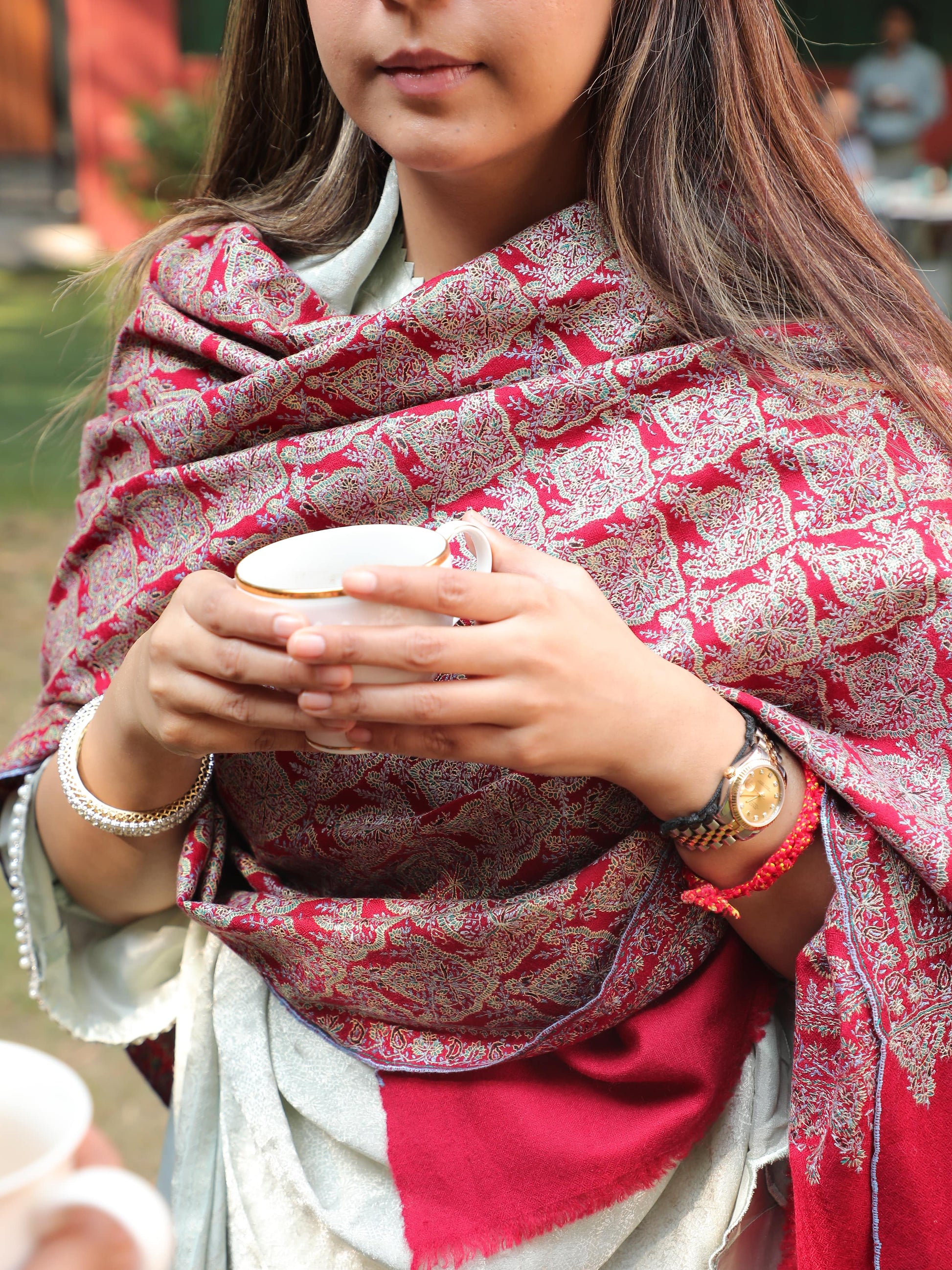 Description: A classic Pashmina Sonpah shawl crafted with fine woven detailing and traditional motifs. Its soft texture and rich design make it perfect for both everyday warmth and special occasions.